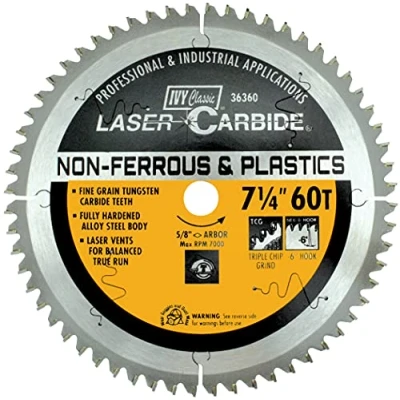 IVY Classic 36360 Laser Carbide 7 1/4 Inch 60 Tooth Non Ferrous Cutting Circular Saw Blade with 5/8 Diamond Knockout Arbor, 1/Card
