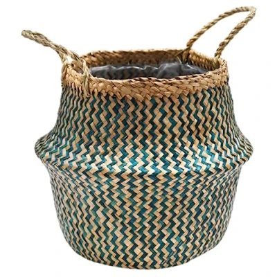 Ivyline Basket, Seagrass, Chevron Teal, H25cm x D30cm