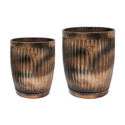 Ivyline Hampton Copper Planters Frost & Rust Resistant Outdoor Lightweight Flower Pot Set Largest H44 x W35 cm Pack of 2