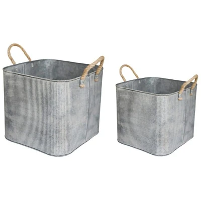 The Galvanised Rope Handle Square Planters with rope handle details blend rustic charm with robust durability. UV-stable and frost-proof, they’re crafted for year-round outdoor use. The on-trend, country-style design enhances any garden or patio, while the rope accents add a farmhouse touch, making them ideal for showcasing seasonal blooms with timeless style. Features: Suitable for outdoors Frost resistant Built-in drainage Lightweight 100% recylable Color : Galvanised Dimensions & Weight: Dimensions: Large: L37 x W37 x H34 cm Medium: L29 x W29 x H27 cm Weight : 2.87 Kg . Outdoor Galvanised Rope Handle Square Planter Set of Two . Delivery is Free to UK Mainland excluding the following postcodes where a surcharge may apply so please check before order for the following postcodes:- *DG Dumfries (DG9), *DT Dorchester (DT9-11), *EX Exeter (EX1-16, 24), *FK Falkirk (FK7-13), *G Glasgow (G63, 83, 84), *KY Kirkaldy (KY3-4, 11-12), *PL Plymouth (PL1-9, 21), *TQ Torquay (TQ1-7, 9-12).BT