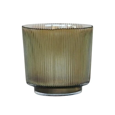 Ivyline Round Candle Holder in Mocha Glass with Ribbed Design Elegant Table Centrepiece Modern Home Decoration H14 x W15 cm