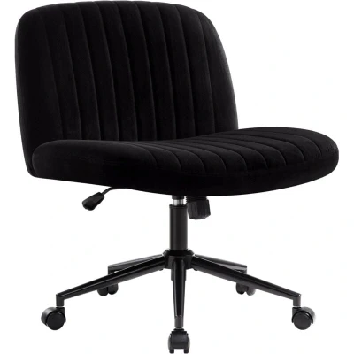 IWMH Armless Office Chair, Desk Chair with Wheels,Ergonomic Criss Cross Legged Chairs Fabric Padded,Height Adjustable Wide Seat Computer Chairs,Mid Back Swivel Vanitychair for Home Black