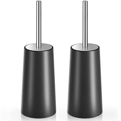 IXO Toilet Brush and Holder, 2 Pack with 304 Stainless Steel Long Handle, Bowl for Bathroom Ergonomic, Elegant,Durable (Black)