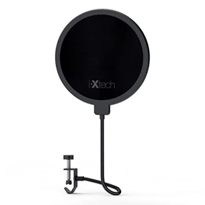 DOUBLE LAYER POP FILTER The IXTECH pop filter for microphones is made of double layer nylon mesh, which effectively reduces plosive, wind noise and saliva splashes during recording or transmission, helping the user achieve a clear and loud sound. UNIVERSAL COMPATIBLE The adjustable screw clamp with scratch resistant gripper can attach a variety of tubular mounting booms or microphone stands. Removes any extra elements that keep you from recording your best voice and presenting it to the audience. Clearer sound: the dreaded hissing and lisping when pronouncing the letter "S" is eliminated and the ugly "plosive" sounds after "B" and "P" are blocked. It is an excellent product for singers, streamers and actors who want to achieve the best possible performance and protect their microphone from spit. How does it work? Pop sounds can be amplified if you hold your mouth too close to the microphone when recording. The plosive sounds interact with the first membrane of the microphone. The gap between the two membranes disperses the remaining air pressure, so that the explosion can be easily contained when passing through the second membrane. A microphone pop protector or filter serves as a barrier between these sounds and the microphone to completely eliminate them in the final product. Easy to install: Designed for stable and extremely secure installation. Adjustable closure fits surfaces up to 1.75 inches. This microphone pop filter attaches directly to the table or desk edge, microphone stand and tripod pole.