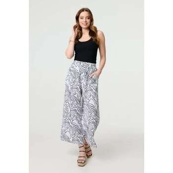 Izabel London Abstract Print High Waist Wide Leg Trousers Made from 100% Viscose for Women UK with Pockets. White