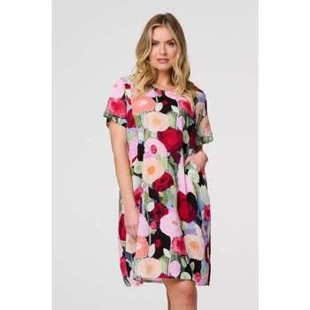 Izabel London Abstract Print Relaxed Short Shift Dress for Women UK with a fit, Pockets,