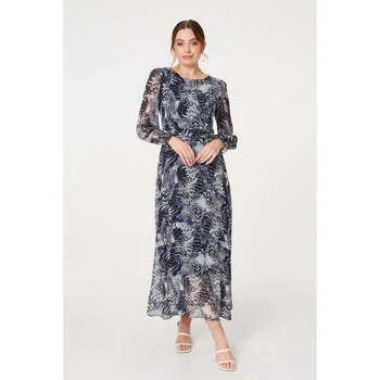 SpartooIzabel London Animal Print Semi Sheer Maxi Dress women's Long Dress in Marine