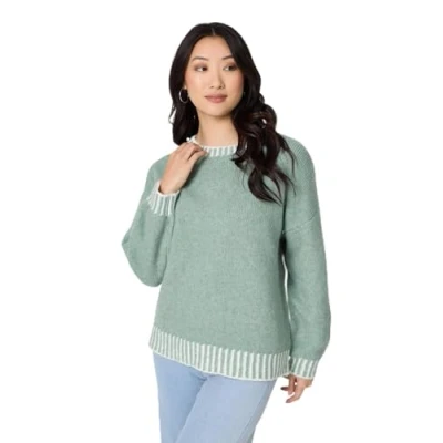 SpartooIzabel London Contrast Trim Balloon Sleeve Jumper women's Sweater in Green