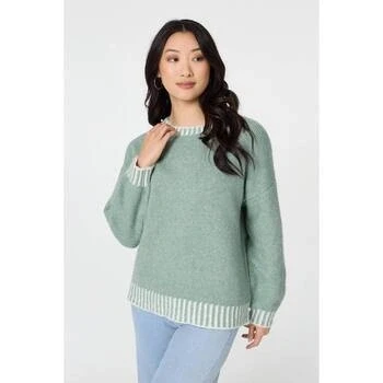 Izabel London Contrast Trim Balloon Sleeve Jumper women's Sweater in Green