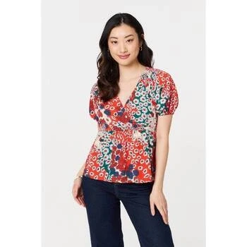 SpartooIzabel London Ditsy Floral Faux Wrap V-Neck Top women's Blouse in Orange