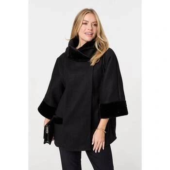 Izabel London Faux Fur Trim 3/4 Sleeve Cape Coat women's Coat in Black