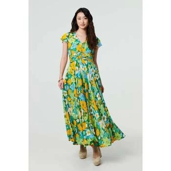 Izabel London Floral Ruched Cap Sleeve Maxi Dress women's Long in Green
