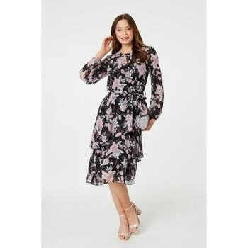Izabel London Floral Semi Sheer Layered Hem Midi Dress women's Long Dress in Black
