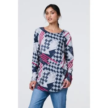 Izabel London Geo Print Long Sleeve Tunic Top for Women UK with a Scoop Neck, Relaxed fit and Thigh Length Hem.