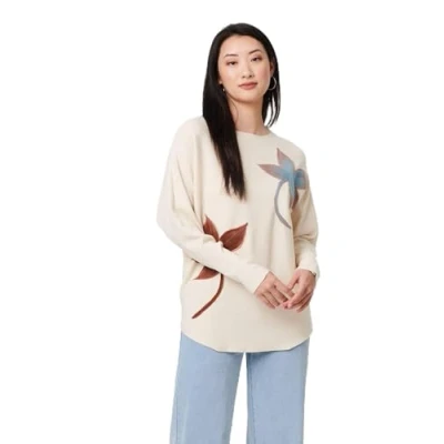 SpartooIzabel London Leaf Print Batwing Sleeve Relaxed Top women's Sweater in Beige