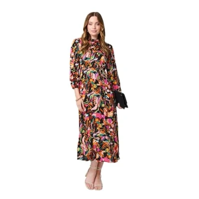 Izabel London Printed High Neck Long Sleeve Midi Dress Made from 100% Viscose for Women UK with a tie Waist. Black