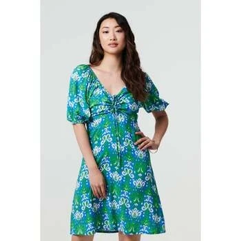 SpartooIzabel London Printed Tie Bardot Neck Short Dress women's Dress in Green