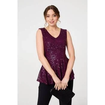 Izabel London Sparkly Sequin Sleeveless Peplum Top for Women UK with a v Neck, Hip Length Hem and Sequins. Black