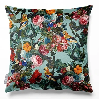 Izabela Peters Cushions With Covers Included, Filled Cushion, Eco Friendly Velvet Cushions, 40 cm, Birds in Paradise Blue Surf, Chair Sofa Seat