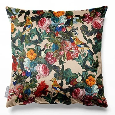 Izabela Peters Cushions With Covers Included, Filled Cushion, Eco Friendly Velvet Cushions, 40 cm, Birds in Paradise Ivory Cream, Chair Sofa Seat