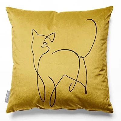 Izabela Peters Cushions With Covers Included, Filled Cushion, Eco Friendly Velvet Cushions, 40 cm, Cat Mustard Ochre, Chair Sofa Seat Large