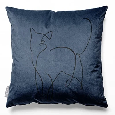 Izabela Peters Cushions With Covers Included, Filled Cushion, Eco Friendly Velvet Cushions, 40 cm, Cat Petrol Blue, Chair Sofa Seat Large