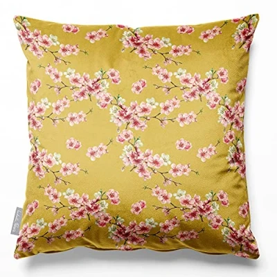 Izabela Peters Cushions With Covers Included, Filled Cushion, Eco Friendly Velvet Cushions, 40 cm, Cherry Blossom Mustard, Chair Sofa Seat Large