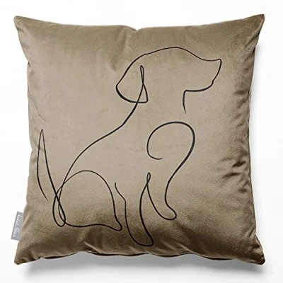 Izabela Peters Cushions With Covers Included, Filled Cushion, Eco Friendly Velvet Cushions, 40 cm, Dog Taupe, Chair Sofa Seat Large