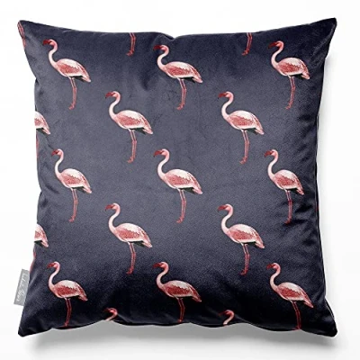 Izabela Peters Cushions With Covers Included, Filled Cushion, Eco Friendly Velvet Cushions, 40 cm, Flamingos Graphite, Chair Sofa Seat Large