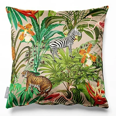 FLORA AND FAUNA COLLECTION: Add designer flair to your home décor with Izabela Peters scatter cushions. The decorative pillows make the ideal couch cushions, cushions for sofa & cushions for bed. ECO-FRIENDLY: Made from our exclusive 100% recycled fabric. The velvet is beautifully soft to touch with the attributes you would expect from a premium fabric but at a much lower environmental cost. AWARD-WINNING DESIGN: The sofa cushions with covers included are designed, printed & handmade in our UK studios. They come in a range of colours from grey cushions, pink cushions to teal cushions. PREMIUM QUALITY: They have a hidden zip and the same pattern is on both sides - making them fully reversible. The cover is machine washable at 30 degrees. Enjoy large cushions with covers included. ECO-FRIENDLY INNERS: The luxury sofa pillows are filled with breathable recycled fibres. They are incredibly soft, shape retaining & offer plump support. Delivered to you in air-compressed packaging