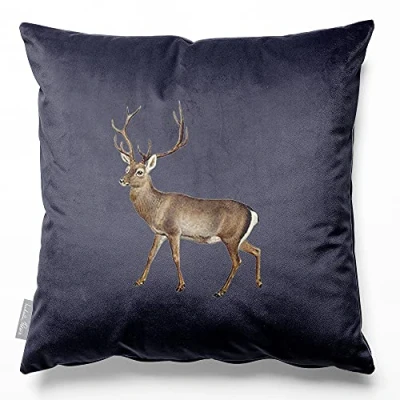 Izabela Peters Cushions With Covers Included, Filled Cushion, Eco Friendly Velvet Cushions, 40 cm, Stag Graphite, Chair Sofa Seat Large