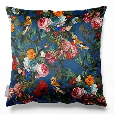 Izabela Peters Cushions With Covers Included, Filled Cushion, Eco Friendly Velvet Cushions, 45 cm, Birds in Paradise Estate Blue, Chair Sofa Seat