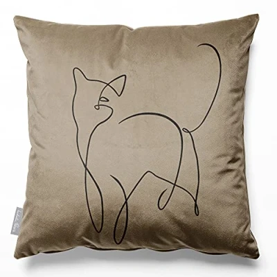 Izabela Peters Cushions With Covers Included, Filled Cushion, Eco Friendly Velvet Cushions, 45 cm, Cat Taupe, Chair Sofa Seat Large