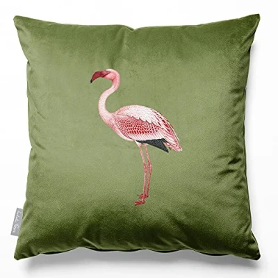 Izabela Peters Cushions With Covers Included, Filled Cushion, Eco Friendly Velvet Cushions, 45 cm, Flamingo Sage, Chair Sofa Seat Large