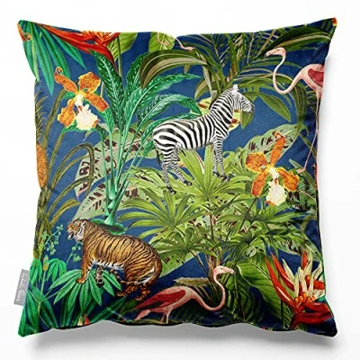 Izabela Peters Cushions With Covers Included, Filled Cushion, Eco Friendly Velvet Cushions, 45 cm, Jungle Fusion Estate Blue, Chair Sofa Seat Large