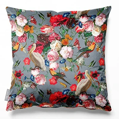 FLORA AND FAUNA COLLECTION: Add designer flair to your home décor with luxury cushions. The decorative pillows make the ideal couch cushions, large cushions, cushions for sofa & cushions for bed. ECO-FRIENDLY: Made from our exclusive 100% recycled fabric. The velvet is beautifully soft to touch with the attributes you would expect from a premium fabric but at a much lower environmental cost. AWARD-WINNING DESIGN: The sofa cushions with covers included are designed, printed & handmade in our UK studios. They come in a range of colours from grey cushions, pink cushions to teal cushions. PREMIUM QUALITY: They have a hidden zip and the same pattern is on both sides - making them fully reversible. The cover is machine washable at 30 degrees. Enjoy large cushions with covers included. ECO-FRIENDLY INNERS: The luxury sofa pillows are filled with breathable recycled fibres. They are incredibly soft, shape retaining & offer plump support. Delivered to you in air-compressed packaging