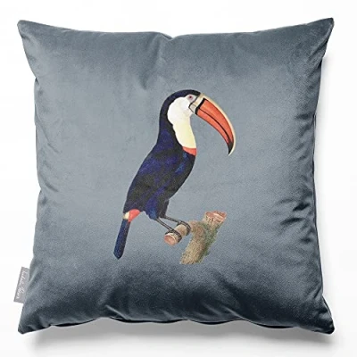Izabela Peters Cushions With Covers Included, Filled Cushion, Eco Friendly Velvet Cushions, 45 cm, Toucan French Grey, Chair Sofa Seat Large