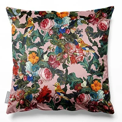 Izabela Peters Cushions With Covers Included, Filled Cushion, Eco Friendly Velvet Cushions, 50 cm, Birds in Paradise Rosewater, Chair Sofa Seat