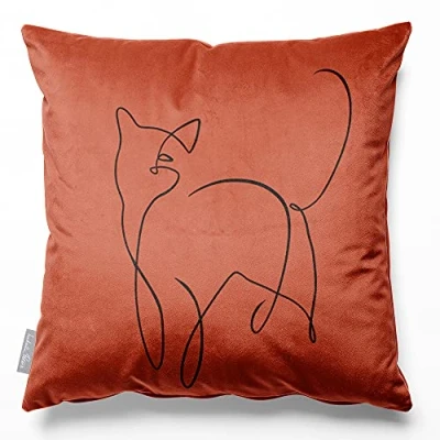 Izabela Peters Cushions With Covers Included, Filled Cushion, Eco Friendly Velvet Cushions, 50 cm, Cat Burnt Ochre, Chair Sofa Seat Large