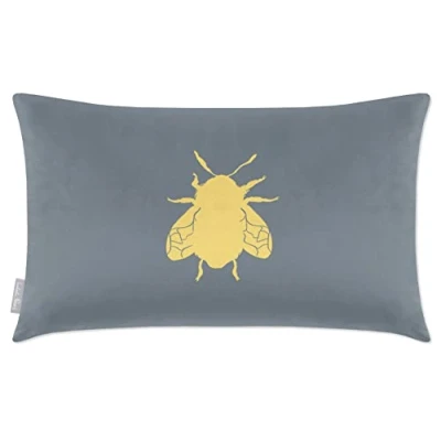 Izabela Peters Cushions With Covers Included, Filled Cushion, Eco Friendly Velvet Cushions, 50 x 30 cm, Bee French Grey, Chair Sofa Seat