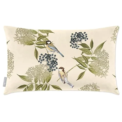 Izabela Peters Cushions With Covers Included, Filled Cushion, Eco Friendly Velvet Cushions, 50 x 30 cm, Bird on Elderflower Cream, Chair Sofa Seat