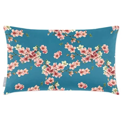 Izabela Peters Cushions With Covers Included, Filled Cushion, Eco Friendly Velvet Cushions, 50 x 30 cm, Cherry Blossom Prussian Blue, Chair Sofa Seat