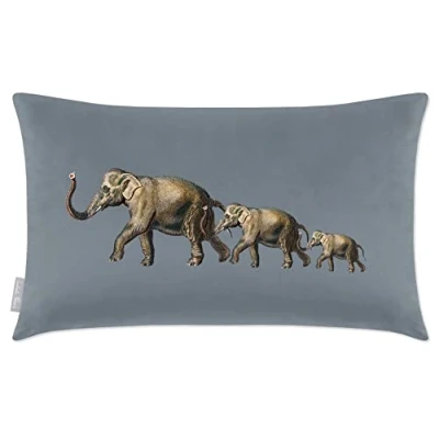 Izabela Peters Cushions With Covers Included, Filled Cushion, Eco Friendly Velvet Cushions, 50 x 30 cm, Elephants French Grey, Chair Sofa Seat