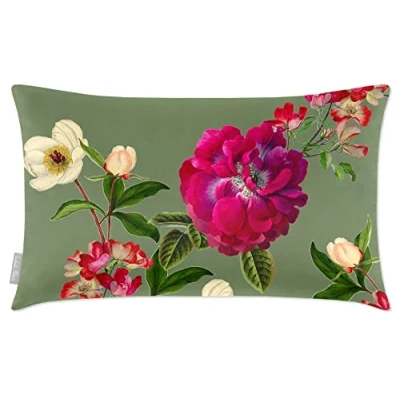 Izabela Peters Cushions With Covers Included, Filled Cushion, Eco Friendly Velvet Cushions, 50 x 30 cm, Floral Glade Sage, Chair Sofa Seat