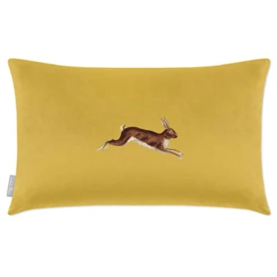 Izabela Peters Cushions With Covers Included, Filled Cushion, Eco Friendly Velvet Cushions, 50 x 30 cm, Hare Mustard, Chair Sofa Seat