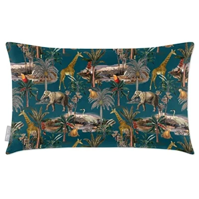 Izabela Peters Cushions With Covers Included, Filled Cushion, Eco Friendly Velvet Cushions, 50 x 30 cm, Safari Voyage Teal, Chair Sofa Seat