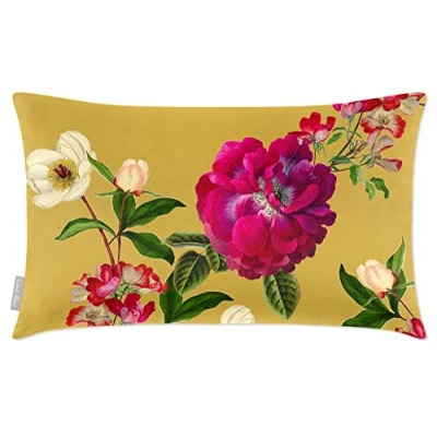 Izabela Peters Cushions With Covers Included, Filled Cushion, Eco Friendly Velvet Cushions, 55 x 35 cm, Floral Glade Mustard, Chair Sofa Seat