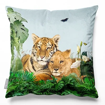 WILD KINGDOM COLLECTION: Add designer flair to your home décor with Izabela Peters scatter cushions. The decorative pillows make the ideal couch cushions, cushions for sofa & cushions for bed. ECO-FRIENDLY: Made from our exclusive 100% recycled fabric. The velvet is beautifully soft to touch with the attributes you would expect from a premium fabric but at a much lower environmental cost. AWARD-WINNING DESIGN: The sofa cushions with covers included are designed, printed & handmade in our UK studios. They come in a range of colours from grey cushions, pink cushions to teal cushions. PREMIUM QUALITY: They have a hidden zip and the same pattern is on both sides - making them fully reversible. The cover is machine washable at 30 degrees. Enjoy large cushions with covers included. ECO-FRIENDLY INNERS: The luxury sofa pillows are filled with breathable recycled fibres. They are incredibly soft, shape retaining & offer plump support. Delivered to you in air-compressed packaging