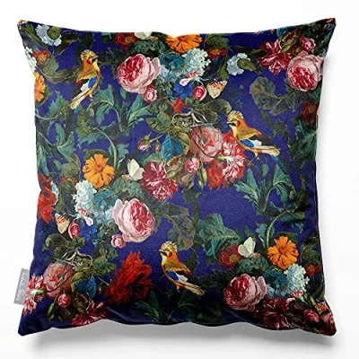 Izabela Peters Cushions With Covers Included, Filled Cushion, Eco Friendly Velvet Cushions, 60 cm, Birds in Paradise Midnight, Chair Sofa Seat