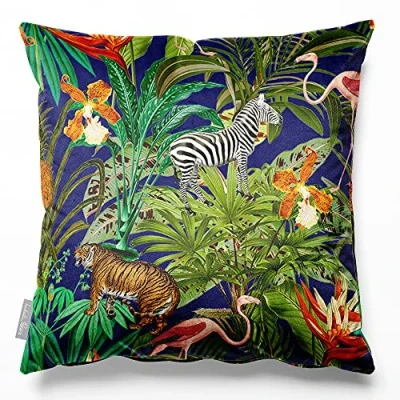 Izabela Peters Cushions With Covers Included, Filled Cushion, Eco Friendly Velvet Cushions, 60 cm, Jungle Fusion Midnight, Chair Sofa Seat Large